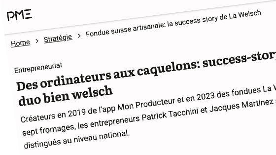 Voilà comment est née La Welsch ! Et c'est aussi le premier produit "romand" de toute la planète mondiale !